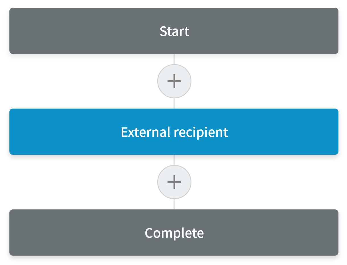 eformsign's workflow is simple at its best. You can add as many of the steps below as you like between the basic workflows Start and Complete.
